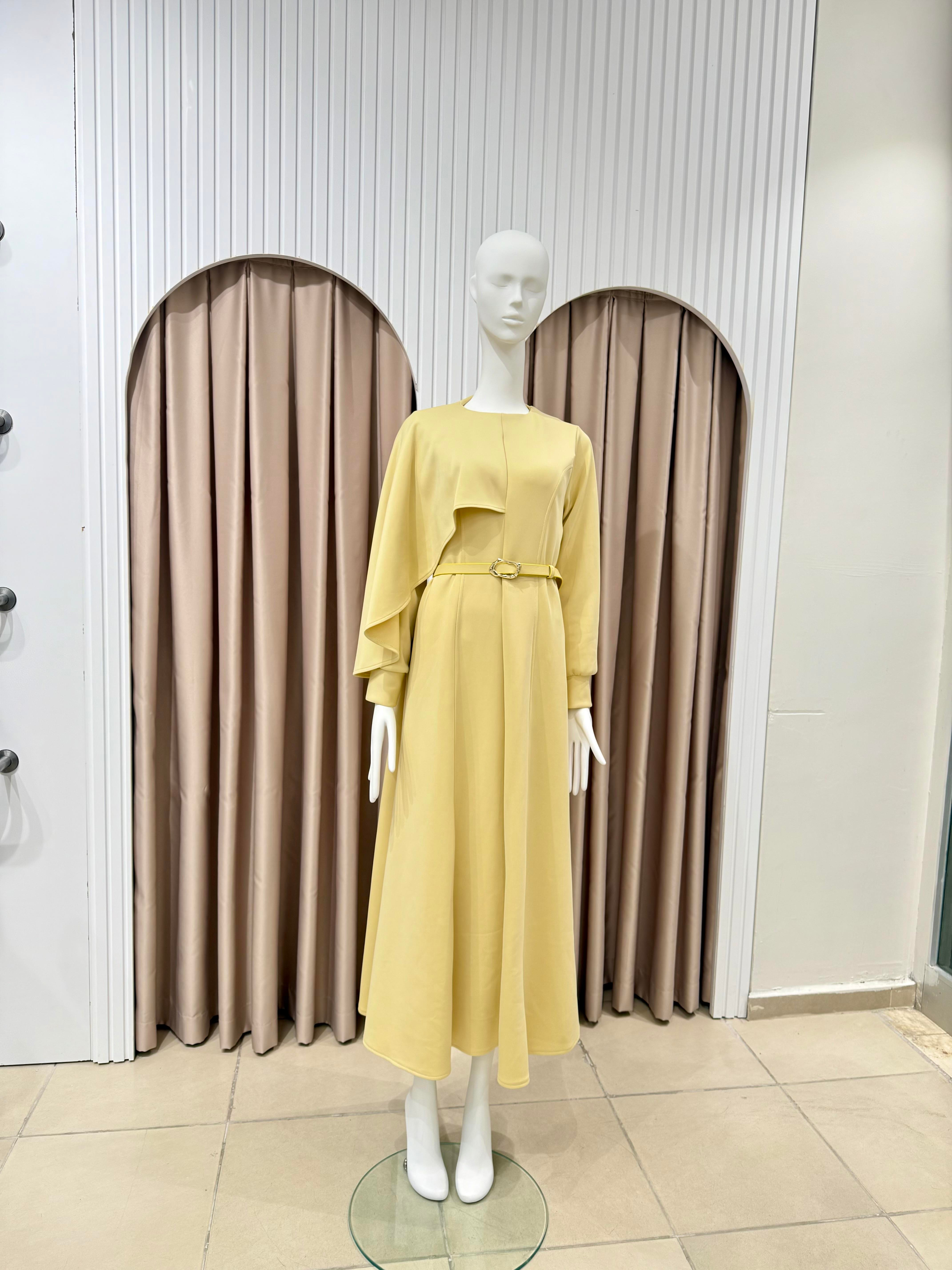 Amelie Omuzdan Şallı Elbise-Butter Yellow