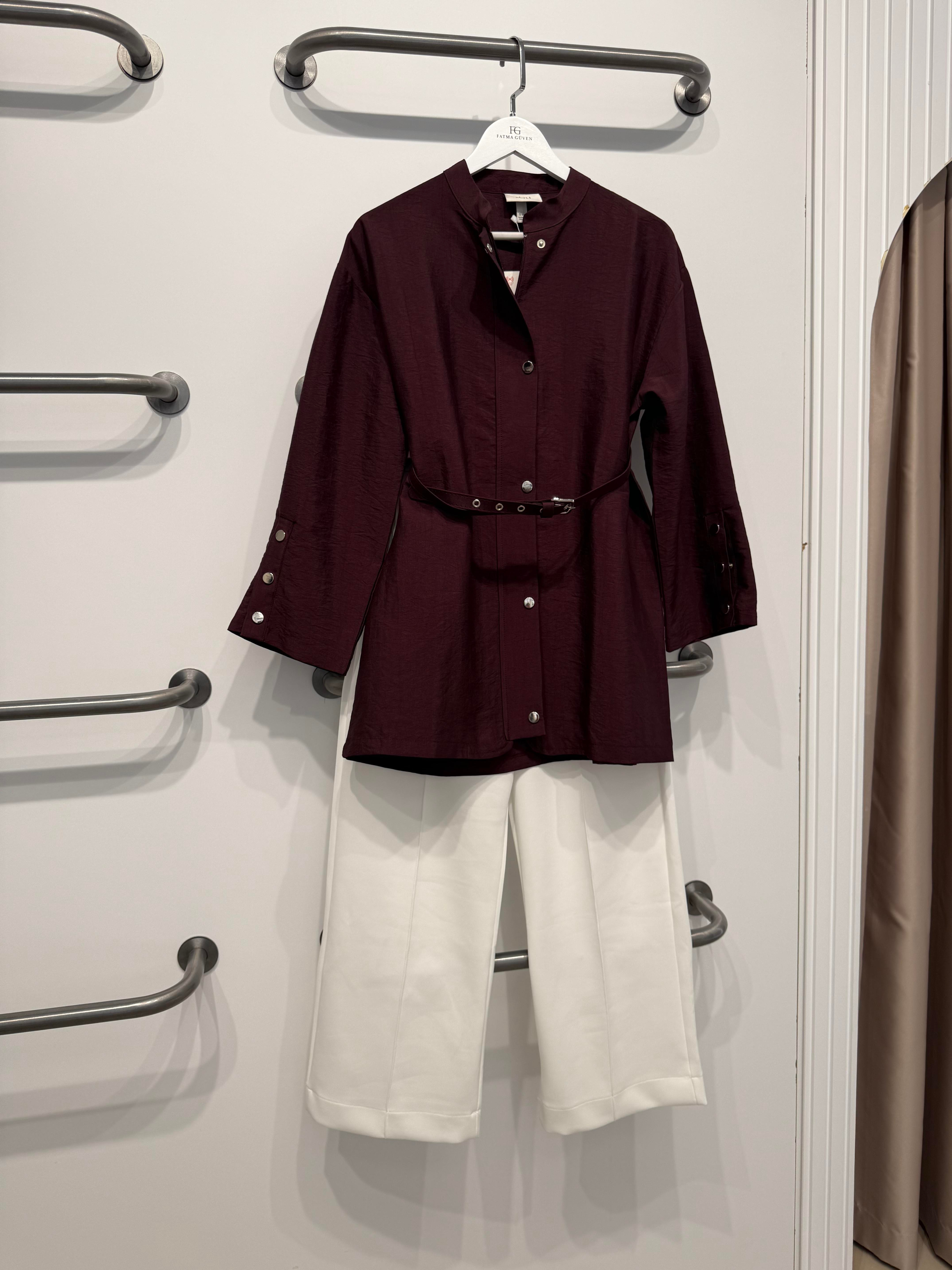 Çıtçıtlı Kemerli Ceket-Mürdüm